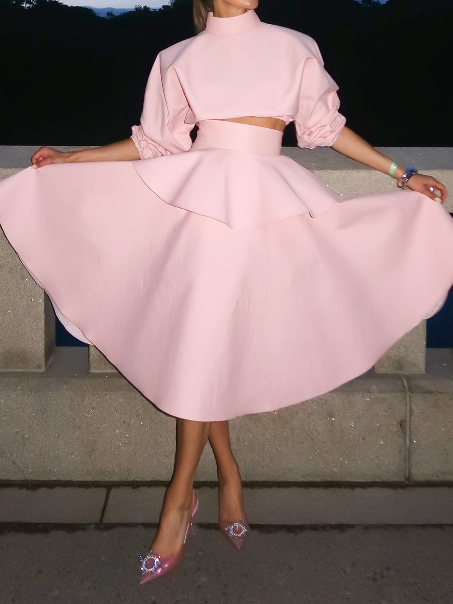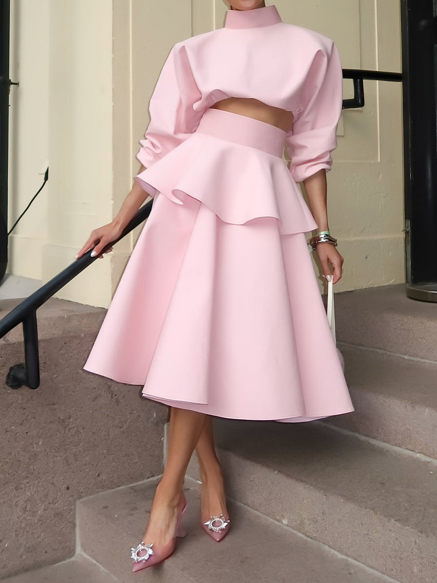 Elegant Flouced Two-Piece Dress